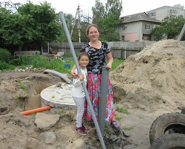 Zurzeit helfen wir der Familie finanziell, eine Wasserversorgung in ihr Haus zu legen und Wanja, der „Mann im Haus“ packt selbstverständlich mit an.