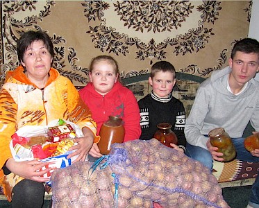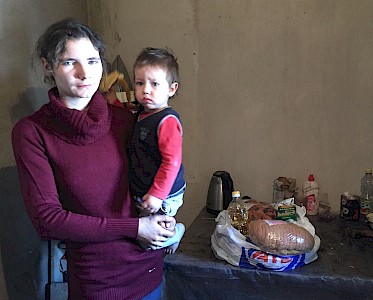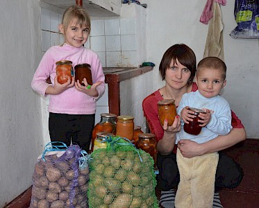 „…hallo Luda…es tut mir Leid, aber…aber unser Lift funktioniert schon lange nicht mehr…aber…aber wir kommen runter, um dir zu helfen…“ Wenig später steht Luda Slobodianik vor einem Hochhaus in Swetlowodsk, mit einigen kleinen Helfern. Irinas Sohn schleppt einen schweren Kartoffelsack, die kleine Schwester Gemüse, der 6jährige Kostja Einweckgläser.