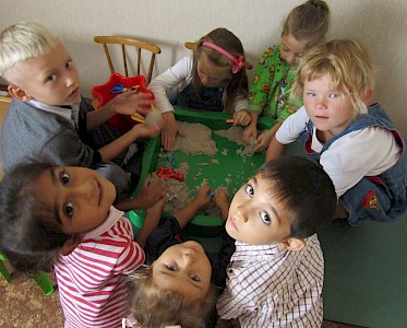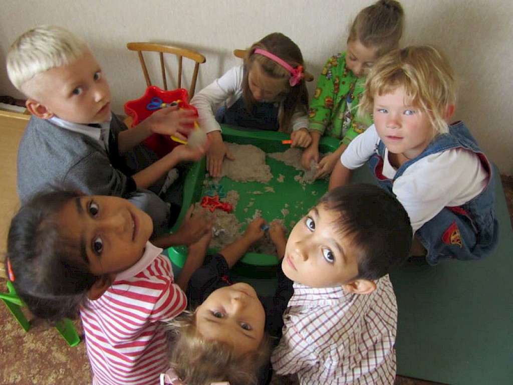 Die meisten unserer kleinen Gäste kommen aus Roma Familien oder ihre Eltern sind Alkoholiker, die sich nicht um sie kümmern. Da müssen wir erst einmal an ihrer Motorik arbeiten.