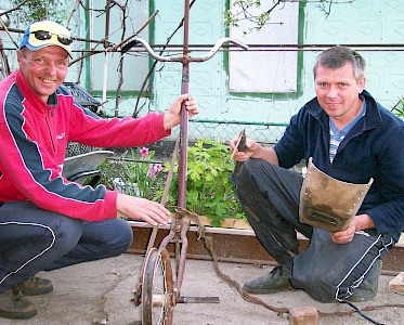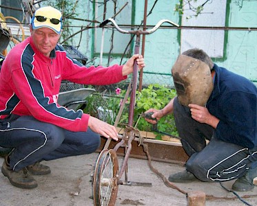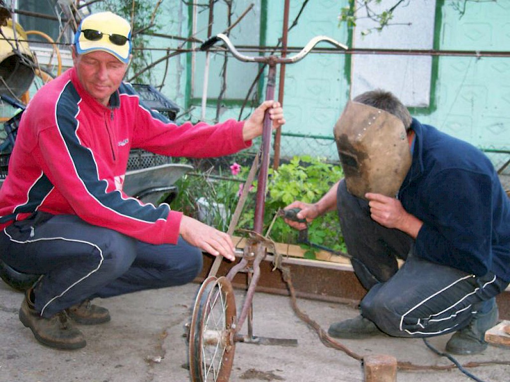Für das Unkraut hat sich Jaroslaw etwa ganz Besonderes ausgedacht, eine lustige „Unkrautmaschine“, die wir heute auf unserer Homepage vorstellen wollen. Keiner unserer Mitarbeiter weiß, wie sie funktioniert, doch Jaroslaw hat bereits einen Plan. Er schweißt und tüftelt vor sich hin und wir sind alle gespannt, was dabei herauskommt.