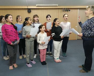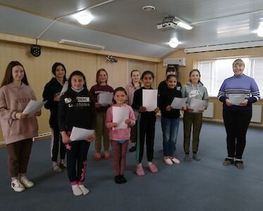 „Gottes Liebe umgibt mich jeden Tag…“ Laut schallen die fröhlichen Lieder von unserem Kinderchor durch „Villa Sonnenschein“. In der Mitte vom Chor steht Raia Merkuschina. Sie kann kaum lesen, hält ihr Liedblatt aber ganz stolz vor sich, denn sie hat bereits alle unsere Lieder auswendig gelernt.