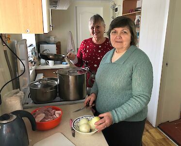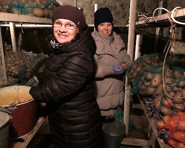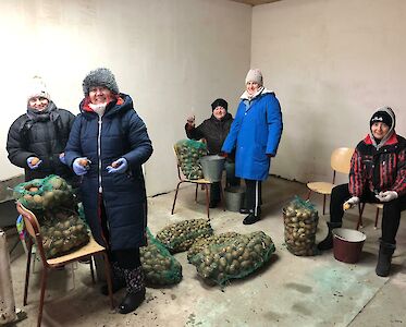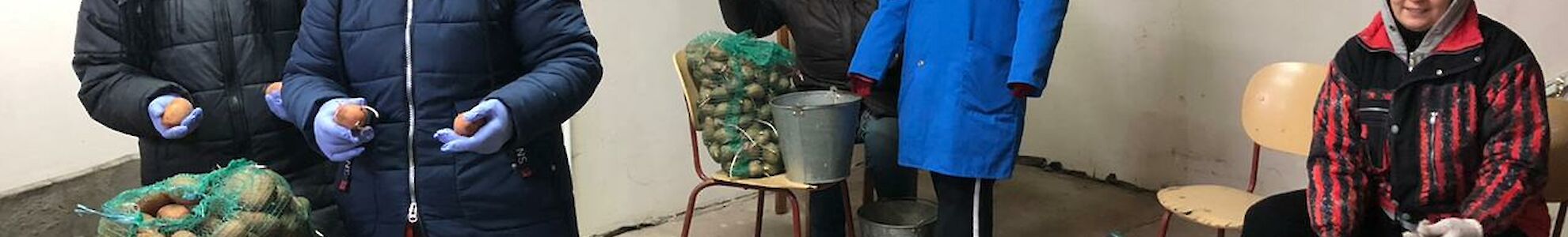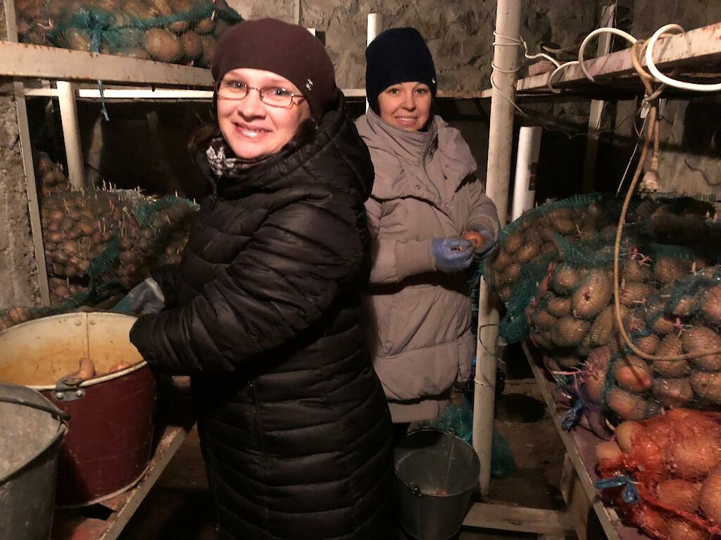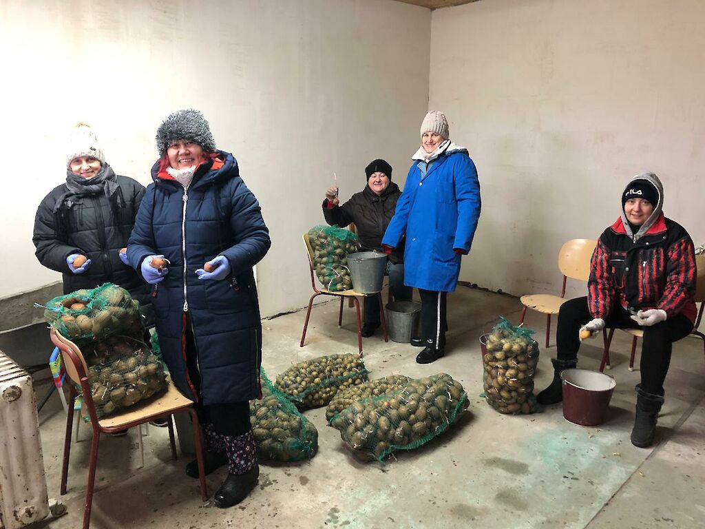 In unseren „Zufluchtsorten“ haben wir große Vorratsräume, in denen wir unser Gemüse, Einweckgläser und natürlich die Kartoffelvorräte aufbewahren. In dieser Woche sind alle Mitarbeiter und einige Kinder in unseren „Zufluchtsort“ nach Pawlowka fahren, um die Kartoffeln vom letzten Jahr zu sortieren.