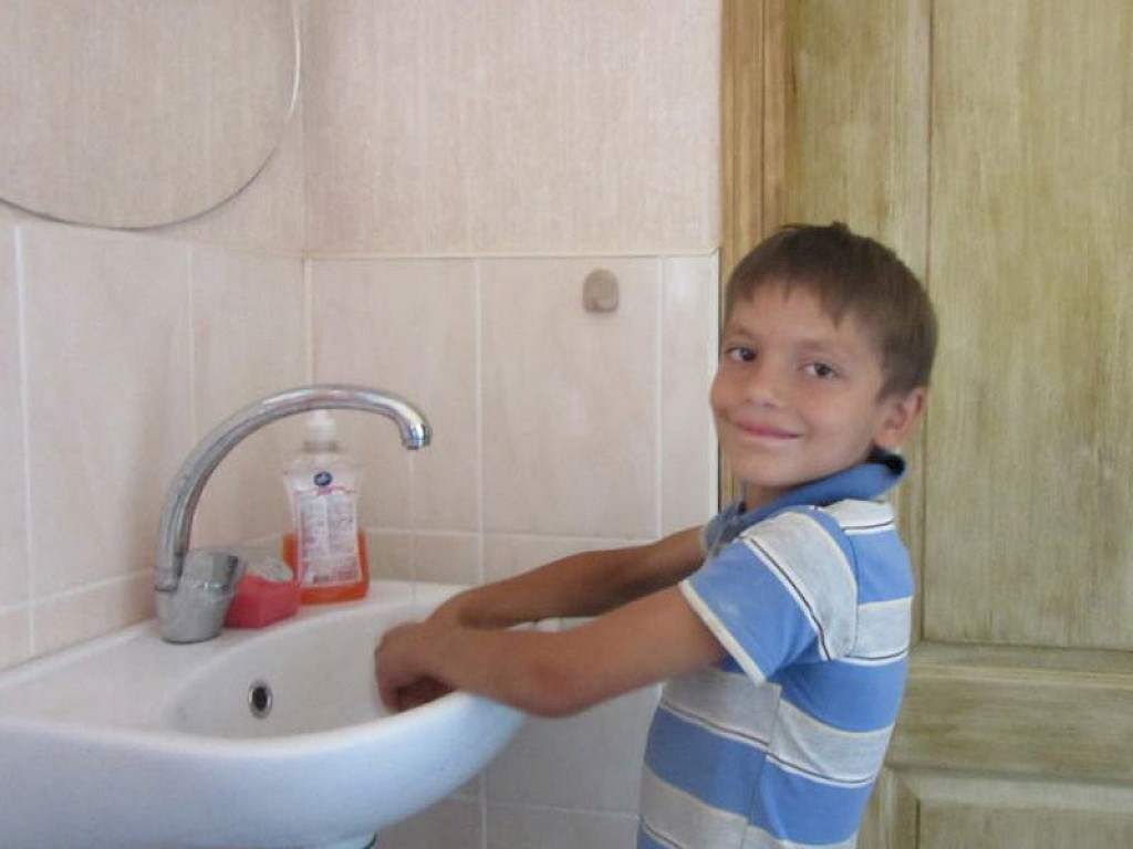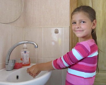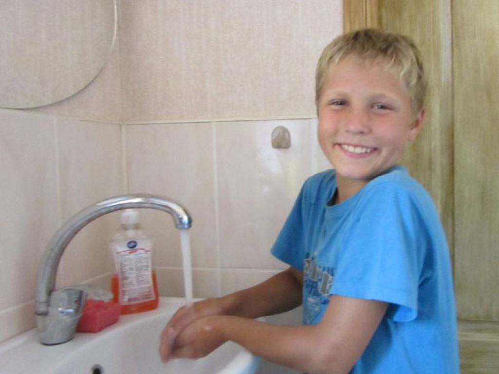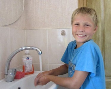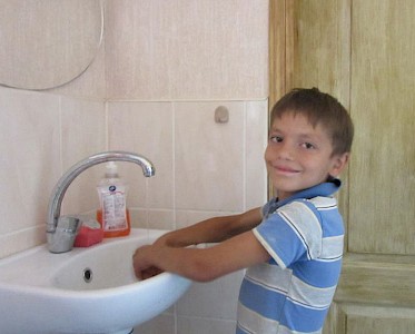 „Kinder, der Wasserhahn ist aber nicht nur ein lustiges Spielzeug. In Zukunft werdet ihr euch, bevor es Essen gibt, die Hände waschen!“ Der Wasserhahn ist ein Teil unserer Erziehung. Die Jungen und Mädchen müssen nicht nur lernen ihre Hände zu waschen, sie lernen Pünktlichkeit, Disziplin und Ordnung.