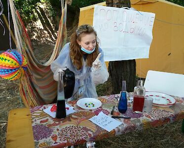 Igor Beresniuk ist unser Sämann, der jeden Abend in seinem Kostüm das Tagesthema noch einmal vertieft. Bis spät am Abend denken die Gruppen noch einmal vor ihren Zelten über das Tagesthema nach, bis sie müde in ihre Schlafsäcke fallen.