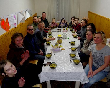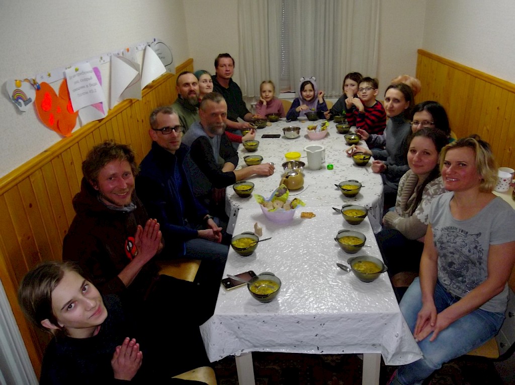 Gestern erreichte uns ein Anruf, ob wir einer Gruppe von Flüchtlingen für eine Nacht ein Dach über dem Kopf geben könnten. So trafen am Nachmittag 16 erschöpfte Menschen in Pawlowka ein.