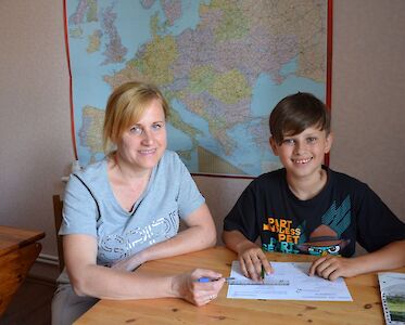 Jegor und Sabrina haben die erste Klasse abgeschlossen. Es ist wichtig, dass sie den gelernten Unterrichtsstoff nicht vergessen. Wir schreiben, lesen, rechnen und loben: „Super Sabrina, du hast alle Wörter richtig geschrieben.“ „Klasse Jegor, die Rechenaufgaben hast du aber schnell gelöst.“ Die zwei sind stolz auf ihre Fortschritte.