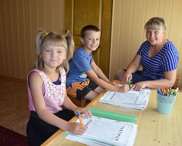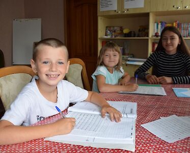 „Tante Aliona, mit den Fragekarten kann ich die Wortarten viel besser unterscheiden.“ Ksenia übt fleißig für die Schule. In den Ferien geben wir Nachhilfeunterricht in Ukrainisch und Mathematik. Während der Coronapandemie und dem Krieg hatten unsere Kinder lange Zeit nur Fernunterricht. Das hat natürlich Auswirkungen auf ihren Bildungsstand.