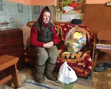 „Ich habe besonders nachts große Angst. Die Sirenengeräusche, die Kälte und die Sorge um meine Söhne belasten mich. Dann bekam ich auch noch einen Schlaganfall. Der Krieg ist schrecklich! Es gibt immer mehr Witwen und Waisen.“ Großmutter Olena wischt sich mit ihrer gelähmten Hand über die Augen. Sie ist traurig und besorgt und versucht, so gut es geht, zu überleben.