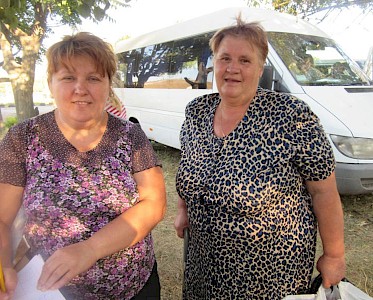 Peter Degtjar, unser LKW Fahrer, versucht dieser Frau nun in ihrer angespannten Situation zu helfen.