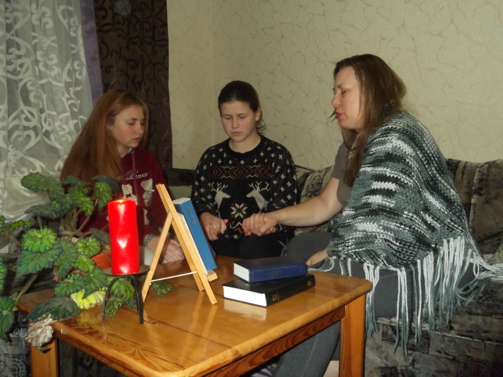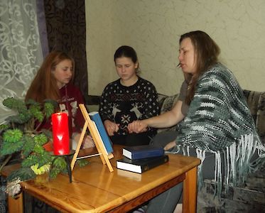 Was wissen wir über Gott? Hört er unsere Gebete? In diesen Wochen hält Aliona Raschkowa, die unsere „Villa Regenbogen“ leitet, regelmäßig mit zwei unserer Mädchen, Galja Sadowskaja und Nastja Morosowa einen kleinen Glaubenskurs.