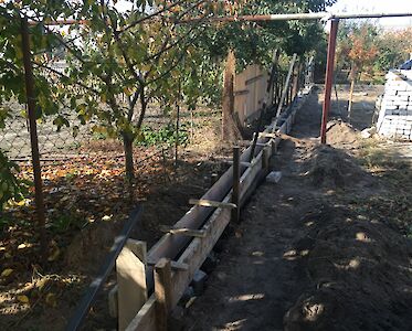 Nun hat unsere Baubrigade angefangen eine stabile Mauer zu unseren Nachbar aufzubauen und eine kleine Terrasse für unsere Mädchen anzulegen.