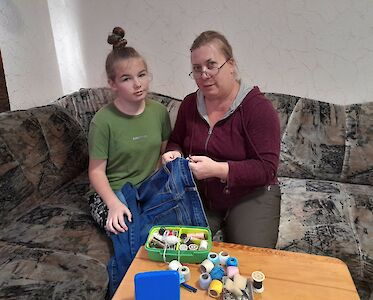 Julia kann sich noch gut an den Tag erinnern, an dem sie zum ersten Mal ein Knopf an ihrer Hose angenäht hat. Heute kann sie bereits ihre Hosen kürzen und nun lernt sie in unserer Lehrwerkstatt, wie man mit einer Nähmaschine arbeitet.