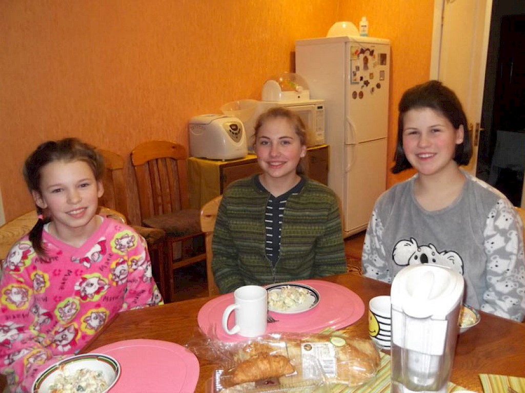 Am Morgen sieht es in unserer „Villa Regenbogen“, einem Haus, in dem wir Mädchen aus Notsituationen aufnehmen, wie in einem Bienenhaus aus. Jeder will zuerst ins Bad. Am Frühstücktisch will dann jedes Mädchen erzählen, was an diesem Tag auf ihn wartet.