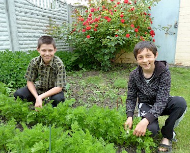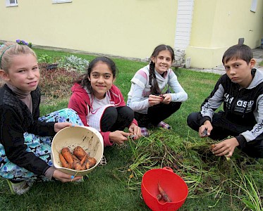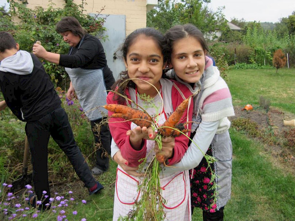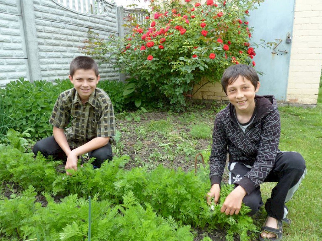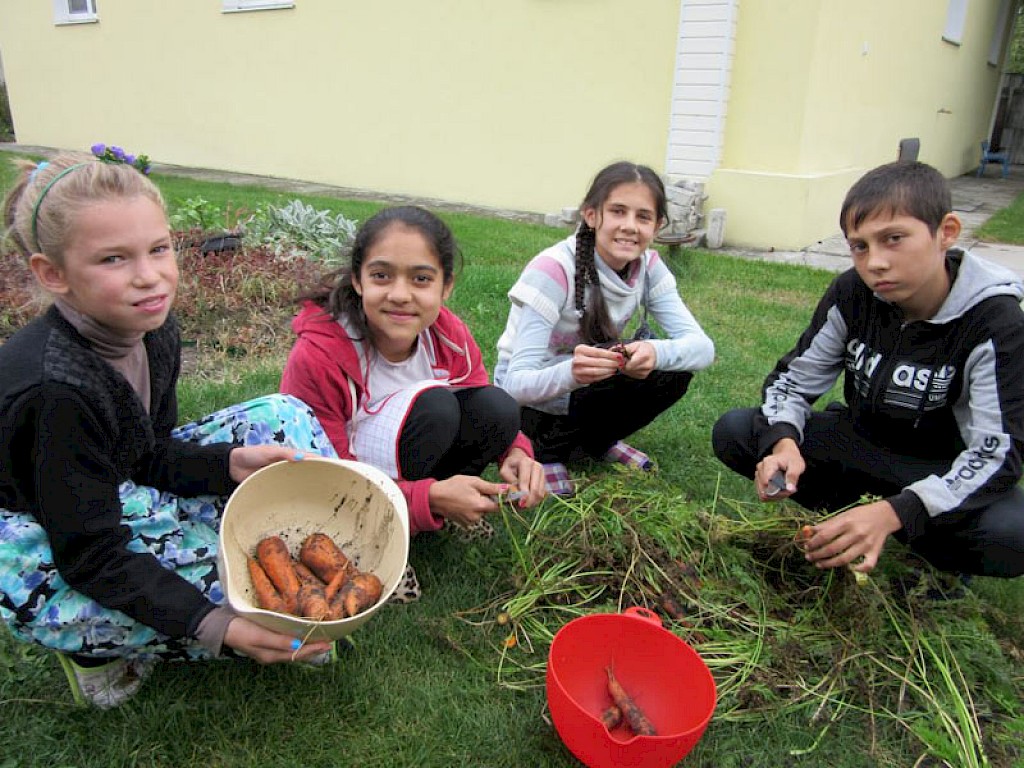 „Tante Aliona, hinter unserer „Villa am See“ wachsen ganz viele Karotten. Ich hab noch nie ein so großes Karottenbeet gesehen.“ Sonja, die seit einigen Wochen unser „Tageskinderheim am See“ besucht, weißt nicht, wie sie ihre Begeisterung ausdrücken soll. Denis und Russalina erklären dem Mädchen, wie ein solches Beet entsteht.