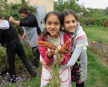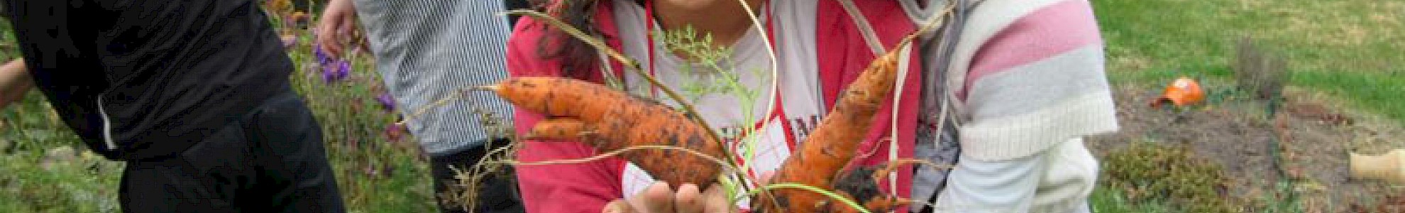 Und wenn wir die Karotten geerntet haben und uns Freunde noch weiteres Gemüse bringen, pressen wir daraus für den kommenden Winter leckeren Gemüsesaft mit ganz vielen Vitaminen!“