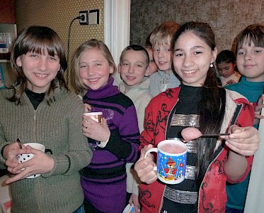 In diesem Winter haben wir ein wunderbares Gerät geschenkt bekommen, mit dem man ein leckeres Vitamingetränk herstellen kann. Wenn Olga Schumilo, unsere Krankenschwester, ihre kleine Praxis öffnet, stehen bereits viele Kinder mit einem Becher vor ihrer Tür, in freudiger Erwartung auf ihr Vitamingetränk.