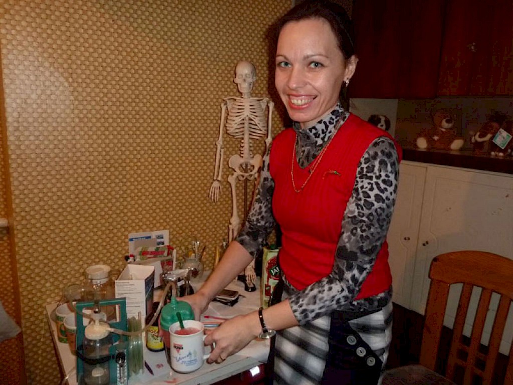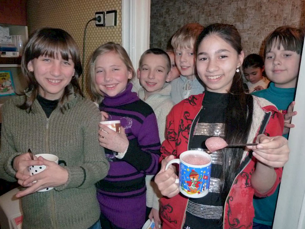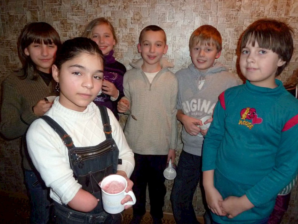In diesem Winter haben wir ein wunderbares Gerät geschenkt bekommen, mit dem man ein leckeres Vitamingetränk herstellen kann. Wenn Olga Schumilo, unsere Krankenschwester, ihre kleine Praxis öffnet, stehen bereits viele Kinder mit einem Becher vor ihrer Tür, in freudiger Erwartung auf ihr Vitamingetränk.