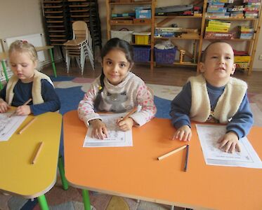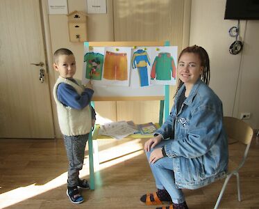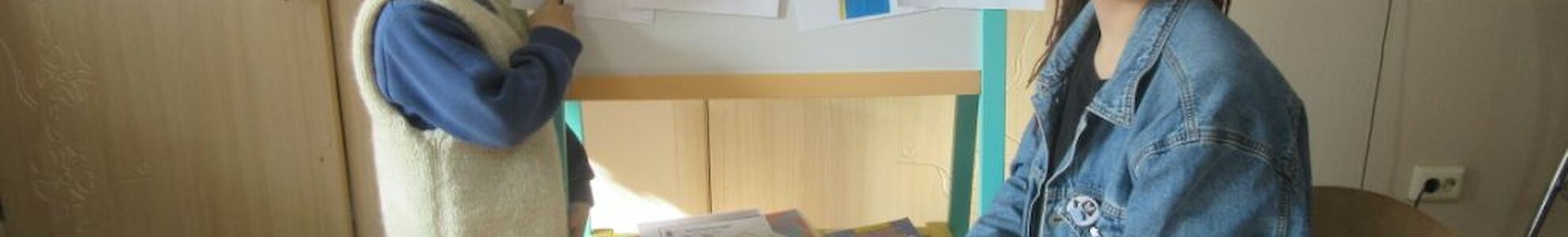 Wika und Galja leiten unser „Spatzennest“. Sie versuchen eine Balance zwischen Lernen und Spielen zu finden. Wir sind froh, dass wir viele Spiele haben, mit denen sie etwas lernen können. Und es erfreut uns natürlich, wenn wir sehen, wie gut sich unsere kleinen Gäste entwickeln.