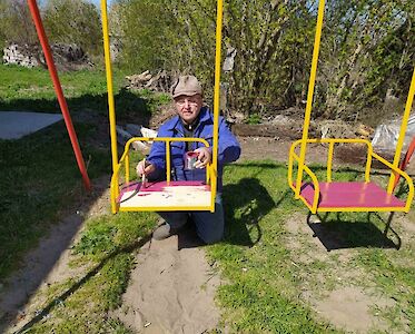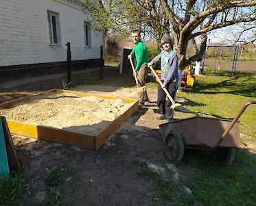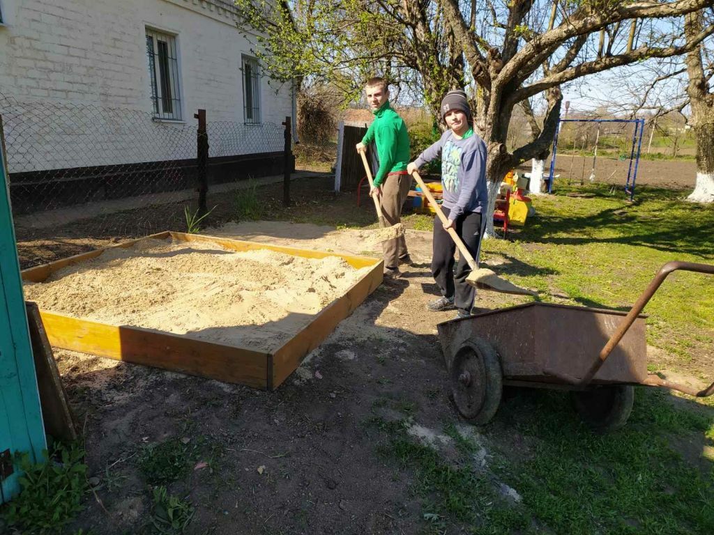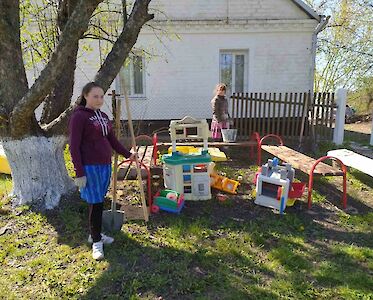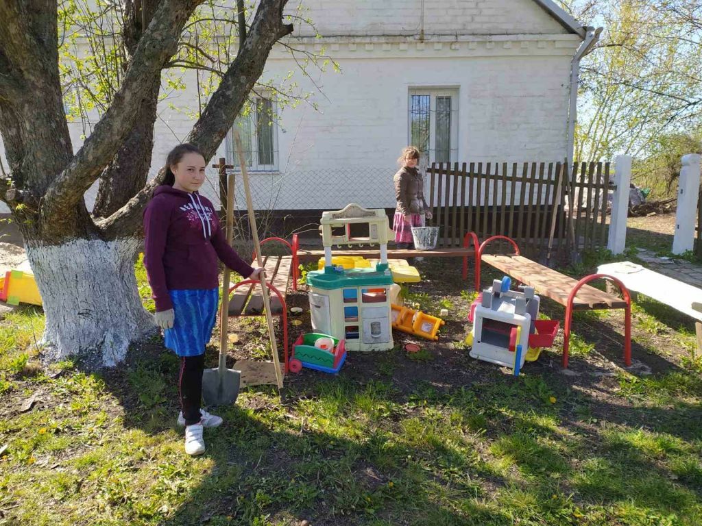 Wie in all unseren Häusern haben wir auch in unserem „Zufluchtsort“ in Odarjewka mit den Arbeiten begonnen. Da wird der Rasen gemäht, Bänke gestrichen, neuer Sand in die Sandkiste gefüllt.