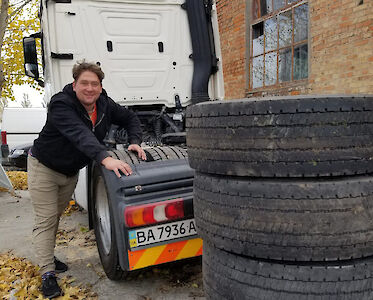 Dima Grabenko arbeitet noch am Fahrzeug. Er braucht vier neue Winterreifen und einen Checkup. Steffi Knöß in unserem deutschen Büro ist auch bereit. Auch sie hat genug Helfer. Dann kann es ja losgehen!