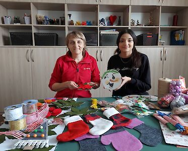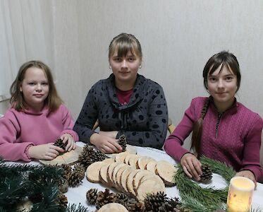 Unsere Mitarbeiter haben begonnen, zusammen mit den Mädchen und Jungen, die Kinderhäuser zu schmücken. Dieses Jahr war es schwierig Bastelmaterialien zu kaufen, da viele Geschäfte zerstört sind oder nur eingeschränkt arbeiten. Wir malen, basteln und kleben zusammen. Einige Dekorationen können die Kinder auch mit nach Hause nehmen und dort für eine festliche Atmosphäre sorgen.