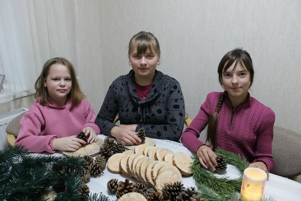 Unsere Mitarbeiter haben begonnen, zusammen mit den Mädchen und Jungen, die Kinderhäuser zu schmücken. Dieses Jahr war es schwierig Bastelmaterialien zu kaufen, da viele Geschäfte zerstört sind oder nur eingeschränkt arbeiten. Wir malen, basteln und kleben zusammen. Einige Dekorationen können die Kinder auch mit nach Hause nehmen und dort für eine festliche Atmosphäre sorgen.