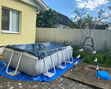 Lisa sprach mit den Müttern, die ihre Kinder in dieser Woche am Morgen bringen und am Abend abholen. Sie erstellte eine Mitarbeiterliste und einen Essensplan. Dann wurden Lebensmittel und natürlich auch Süßigkeiten eingekauft. Für den Garten unserer Villa Regenbogen haben wir einen Swimming Pool gekauft.