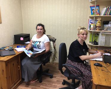 „Wir können die Kinder die biblischen Geschichten nachspielen lassen. Auf diese Weise erleben sie die Handlungen der Helden aus der Bibel und erinnern sich später besser daran“, meint Wika. Mascha schlägt Spiele vor, die interessant sind. Lena beschäftigt sich mit Filmmaterial. Oxana holt Kostüme aus dem Regal, die für die Sketche benötigt werden.