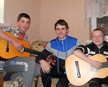 Wie an jedem Nachmittag stimmen die Gitarren in unserem „Zufluchtsort“ auf unser Treffen ein. In der Zwischenzeit haben wir schon viele Lieder gelernt, die wir von ganzem Herzen singen.
