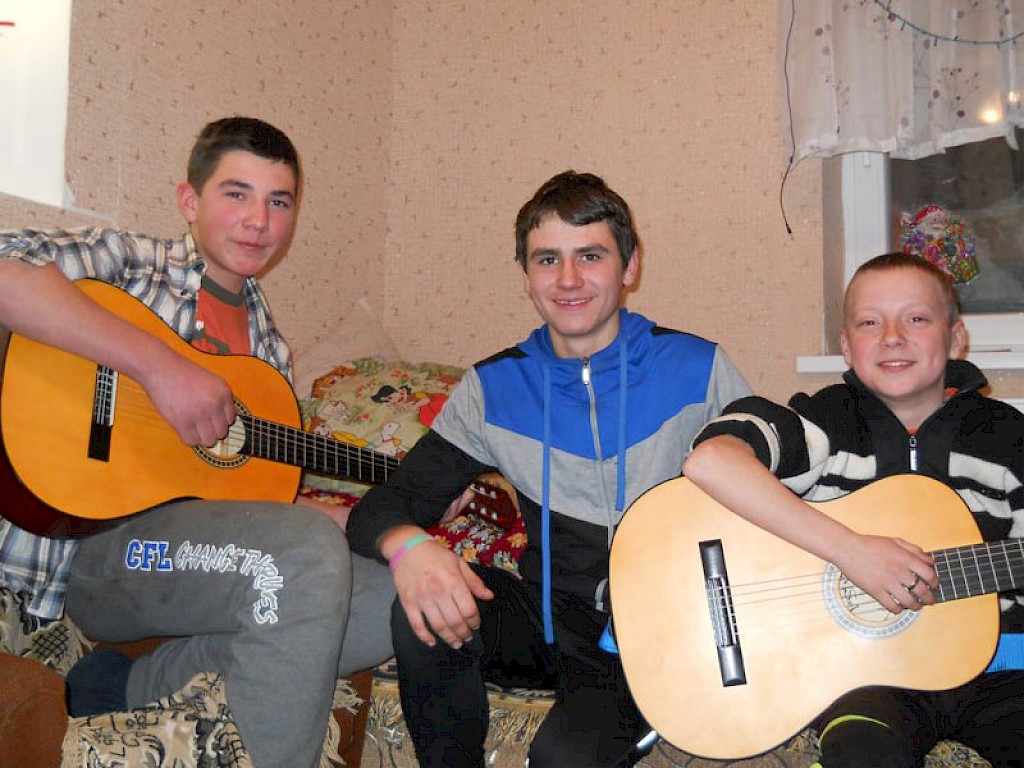 Wie an jedem Nachmittag stimmen die Gitarren in unserem „Zufluchtsort“ auf unser Treffen ein. In der Zwischenzeit haben wir schon viele Lieder gelernt, die wir von ganzem Herzen singen.