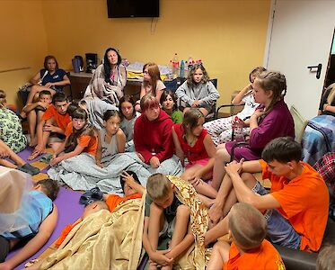Am Alarmton auf ihrem Handy erkennt Lena, dass sie aufspringen muss, um die Kinder und Mitarbeiter zu wecken. Schlaftrunken stolpern alle in den Schutzraum. Einige sind nicht wach zubekommen und werden getragen. Die halbe Nacht verbringen alle im Schutzraum, während sechs Raketen in ihrer Nähe explodieren. Doch Gott hält seine schützende Hand weiterhin über unser Sommerlager.