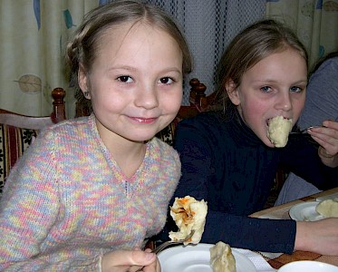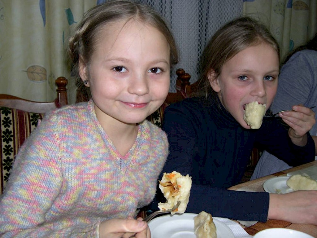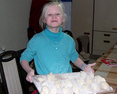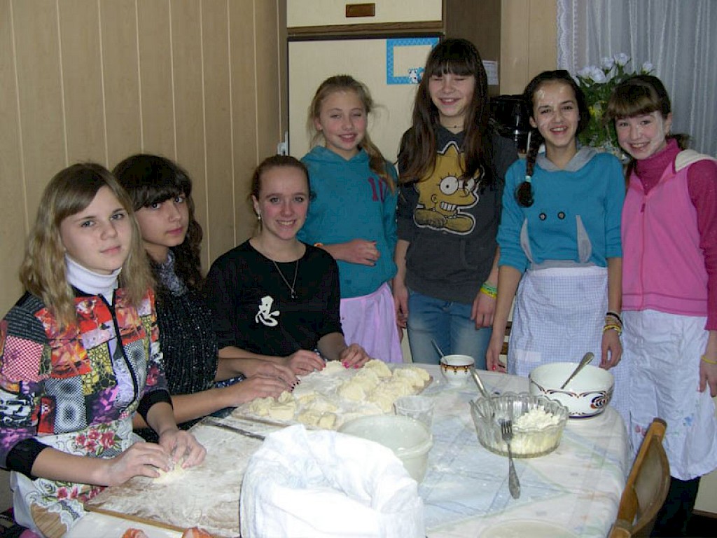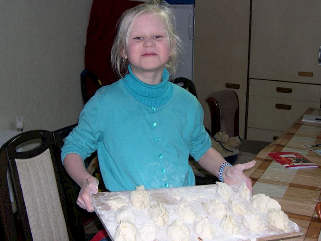 An Tagen, an denen sich unsere „Supergirls“ treffen, eilen die Mädchen besonders schnell zu unserer „Villa Sonnenschein“, denn diese Gruppe will man auf keinen Fall verpassen. Heute machen wir Wareniki, die ukrainischen Ravioli, die meistens mit Beeren oder mit Quark gefüllt werden.