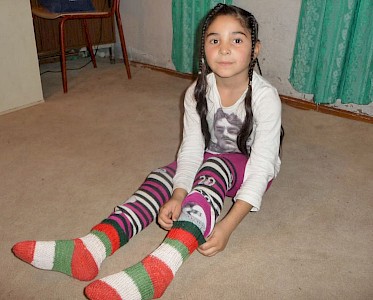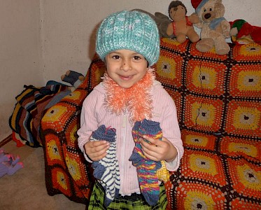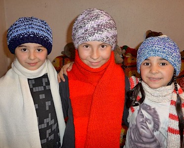 Heute haben wir Kartons mitgebracht, randvoll gefüllt mit bunten Schals, Mützen, Handschuhen und Socken. Danke allen Missionsfreunden in Deutschland, die uns so wunderbar beschenkt haben!