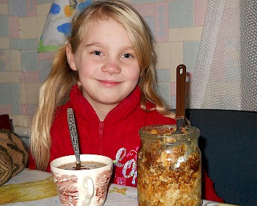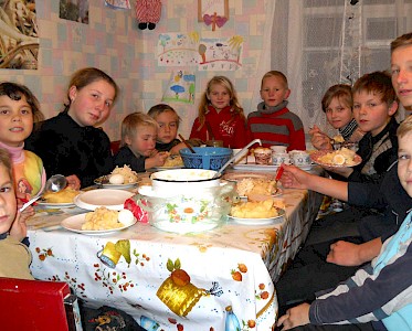 Dann sitzen wir gemütlich zusammen, wie in einer richtigen Familie, die unsere kleinen Gäste nie kennengelernt haben und wenn dann noch selbstgebackenes Brot mit Marmelade auf dem Tisch steht, ist ihre Freude kaum beschreibbar.
