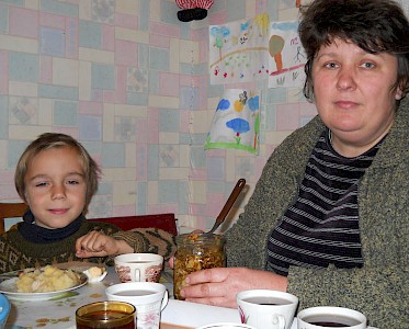 Auch in unserem „Zufluchtsort“ in Odarjewka ist heißer Tee das Lieblingsgetränk der Kinder. Nach dem Mittagessen, das unsere Köchin, Wera Kolomoetz, mit viel Liebe zubereitet hat, wird Tee serviert.