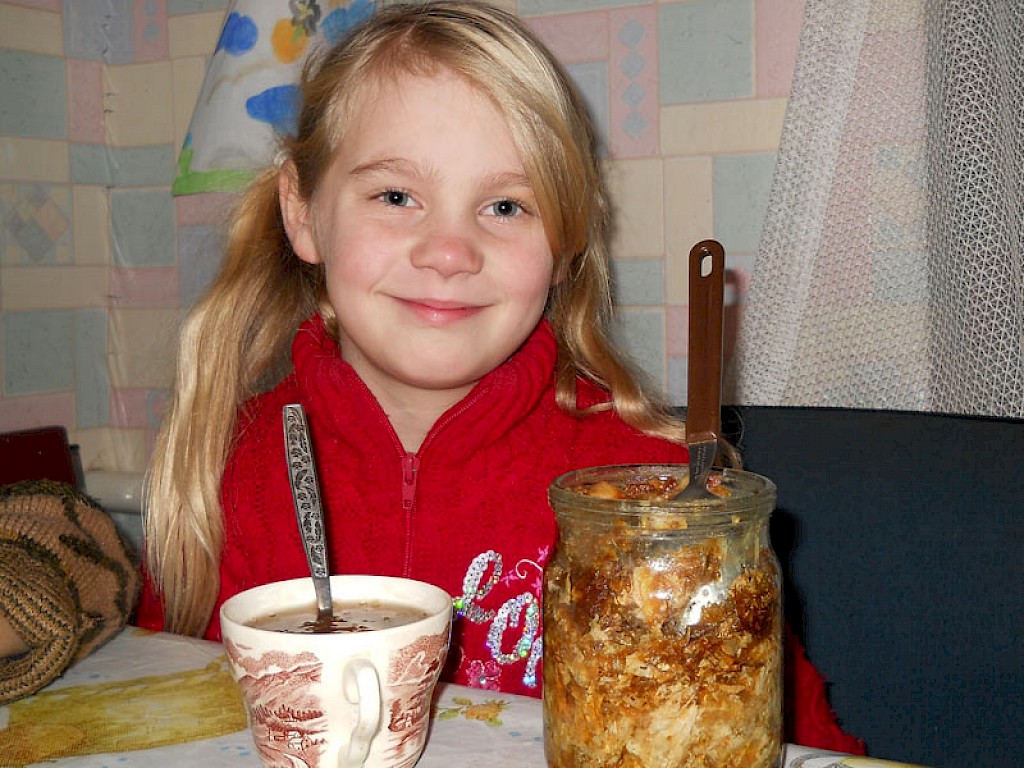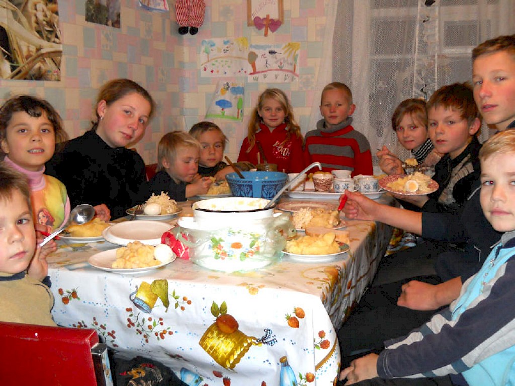Dann sitzen wir gemütlich zusammen, wie in einer richtigen Familie, die unsere kleinen Gäste nie kennengelernt haben und wenn dann noch selbstgebackenes Brot mit Marmelade auf dem Tisch steht, ist ihre Freude kaum beschreibbar.