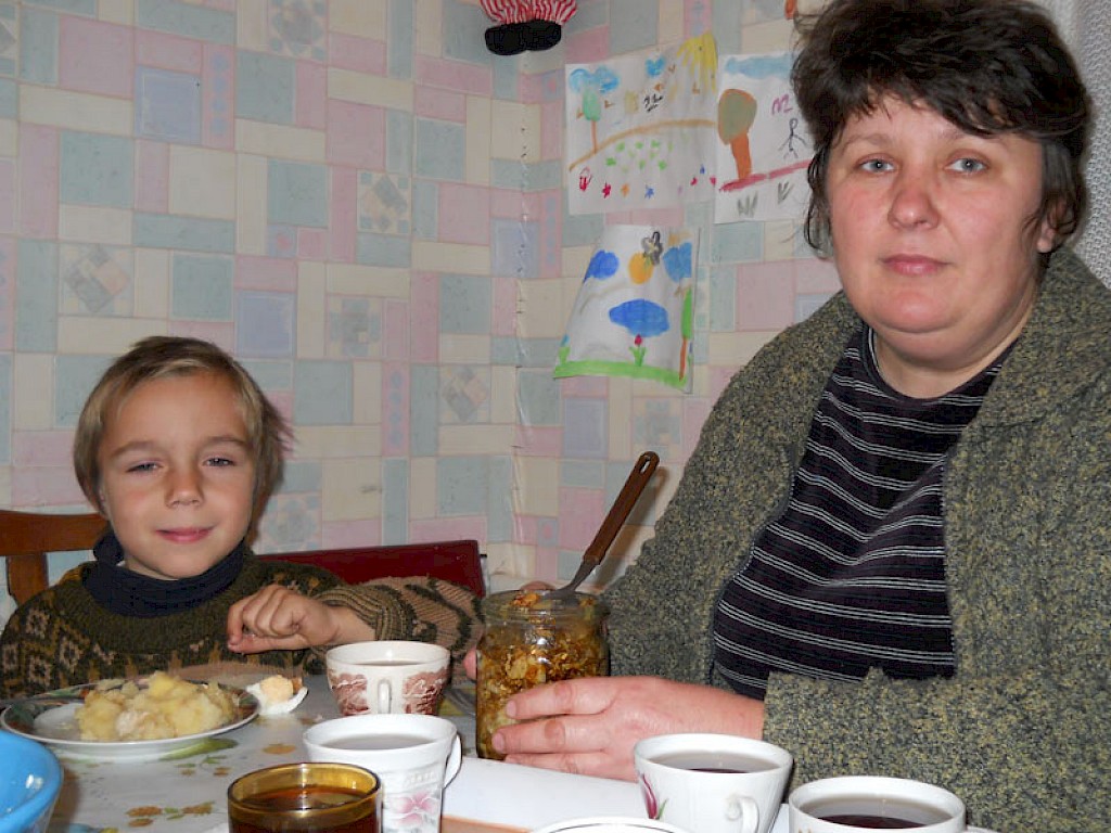 Auch in unserem „Zufluchtsort“ in Odarjewka ist heißer Tee das Lieblingsgetränk der Kinder. Nach dem Mittagessen, das unsere Köchin, Wera Kolomoetz, mit viel Liebe zubereitet hat, wird Tee serviert.