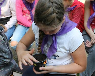 In der Morgenandacht denken wir darüber nach, was wir säen müssen, um das Richtige zu ernten. Jedes Kind erhält einen kleinen Samen von dem riesigen Baum, um dem wir sitzen. Unsere Gäste können es kaum glauben, dass aus einem so kleinen Samen ein so großer Baum wachsen kann.
