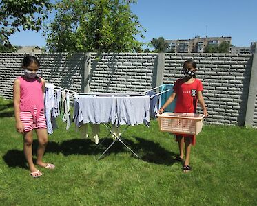 In der Vergangenheit haben unsere Mitarbeiterinnen meistens die Wäsche unserer Kinder mit unseren Waschmaschinen gewaschen. Während der Corona-Krise haben dann immer mehr Kinder die Wäsche von ihren ganzen Geschwistern mitgebracht.