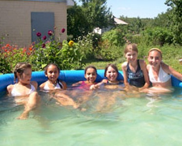 Auch im Sommer besuchen viele Jungen und Mädchen unsere Kinderhäuser, denn wo wird ihnen sonst ein so abwechslungsreiches Programm geboten, wie bei uns. Unsere Köchinnen zaubern jeden Tag leckeres Essen auf den Tisch, in diesen Monaten natürlich besonders aus Gemüse und Früchten. Doch der Höhepunkt ist unser großer aufblasbarer Swimming Pool im Garten von „Villa am See“. Da in den vergangenen Wochen das Thermometer in Swetlowodsk nie unter 30 Grad gefallen ist, freuen sich alle riesig auf die wunderbare Erfrischung. Nach dem Bad im kühlen Nass genießen wir gemeinsam einen Fruchtsaft und bevor die Kinder nach Hause gehen, lesen wir ihnen noch eine biblische Geschichte vor.