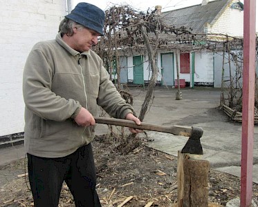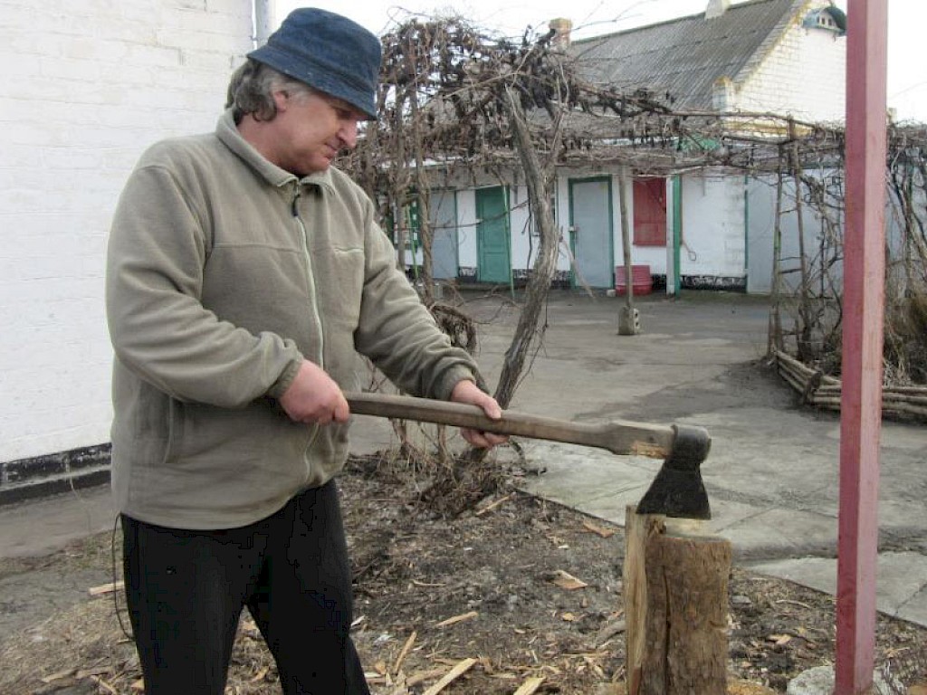 Wassili sah in unserem Angebot, ihn als Hausmeister anzustellen, eine Chance für einen Neuanfang. Heute bearbeitet er unseren Garten, pflanzt Gemüse an, heizt den Ofen, schaufelt Schnee.