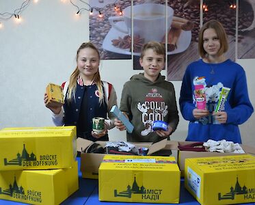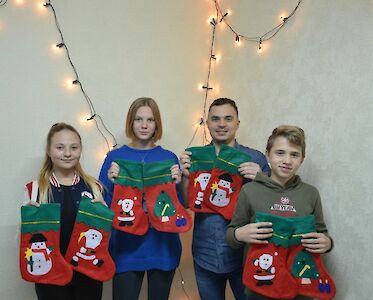 In der Ukraine haben wir wie in den vergangenen Jahren „Weihnachtssocken“ verteilt an Gemeinden und Missionsfreunde in unserer Umgebung. Diese Socken werden von ihnen mit Lebensmitteln, Süßigkeiten und kleinen Überraschungen gefüllt.