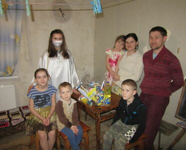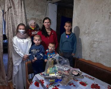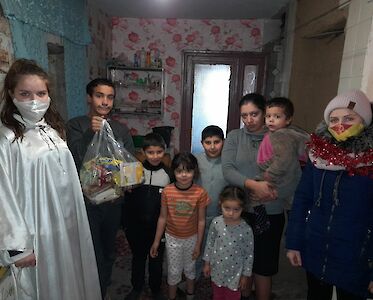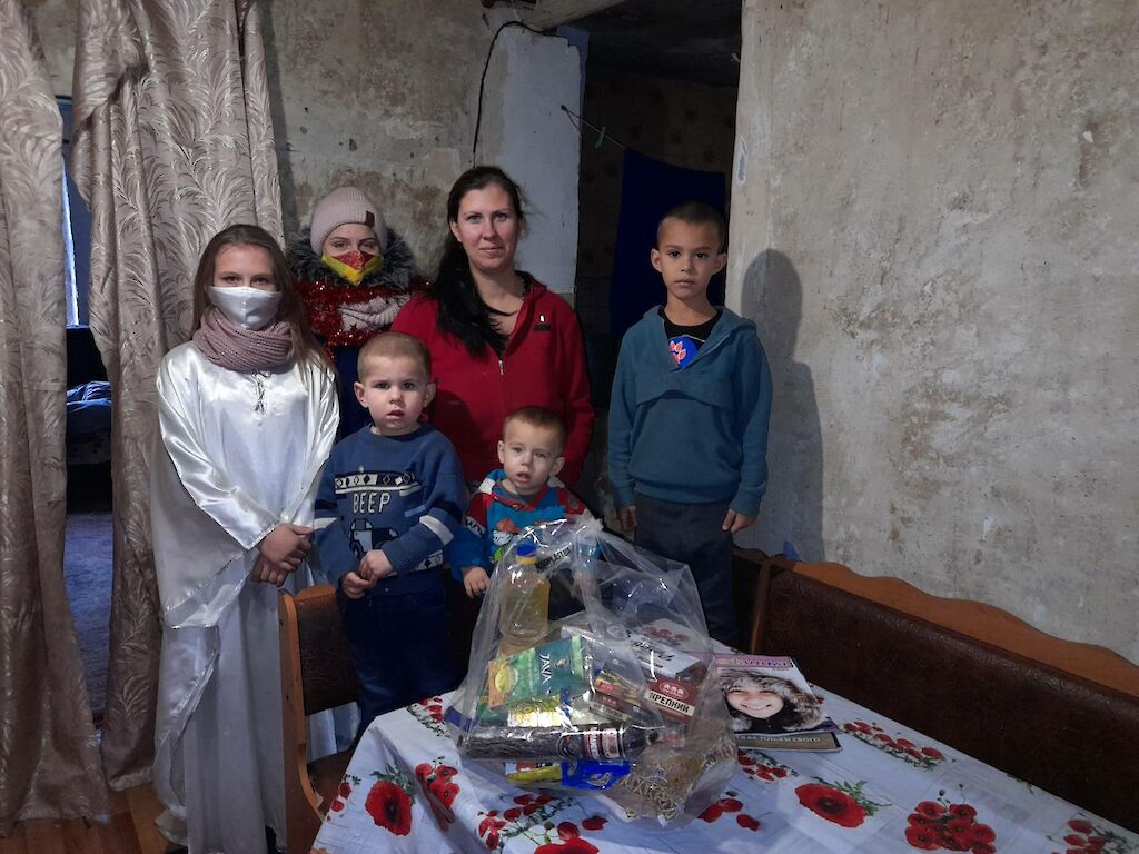 „…und der Engel sagte zu ihnen: Fürchtet euch nicht, ich verkünde euch große Freude, denn euch ist heute der Heiland geboren…“ Es ist ganz still in der kleinen Hütte in Boschedarjewka, als wir die Familie mit unserem Weihnachtsprogramm überraschen.
