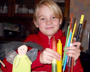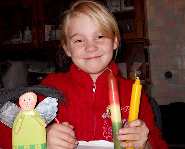 Am nächsten Tag lagen vor jedem Kind ein großes Stück Papier und viele Buntstifte und die Aufgabe lautete: „Malt einfach auf diesen Zettel etwas, was ihr Gott zum Weihnachtsfest schenken wollt!“