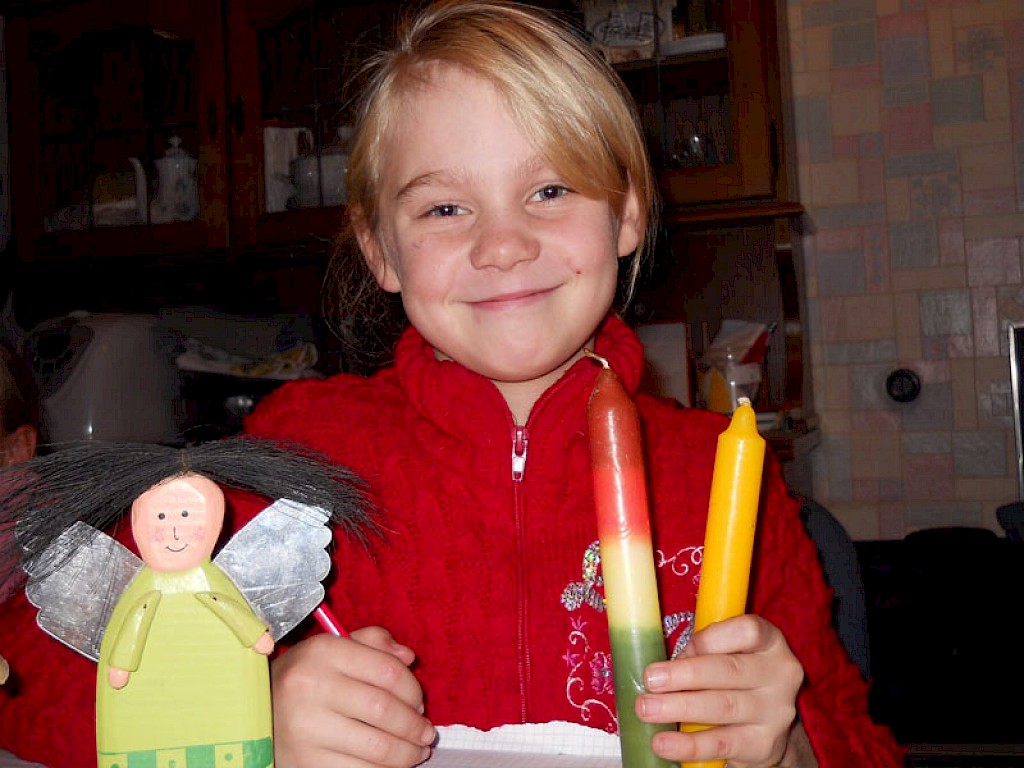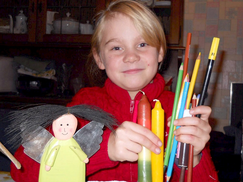 Am nächsten Tag lagen vor jedem Kind ein großes Stück Papier und viele Buntstifte und die Aufgabe lautete: „Malt einfach auf diesen Zettel etwas, was ihr Gott zum Weihnachtsfest schenken wollt!“