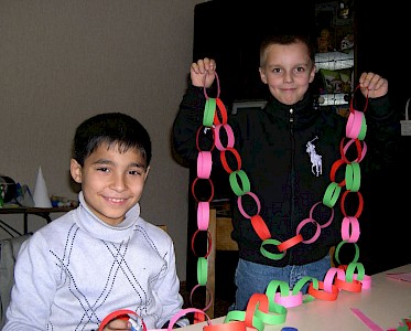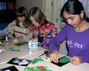 Da haben wir beschlossen, vermehrt Dekorationen zu basteln, die von den Kindern nach Hause mitgenommen werden können. Das hat natürlich alle begeistert. Da entstanden bunte Girlanden, Sterne und Fensterbilder.