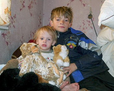 Gestern besuchten wir eine arme Familie in Alexeewka, die fast ausschließlich von trockenem Brot und Kartoffeln lebt. Ihre fünf Kinder haben keine Spielsachen. Sie haben sich aus einem alten Karton Puppen ausgeschnitten. Sie haben nicht einmal Buntstifte, um diese Puppen anzumalen.
