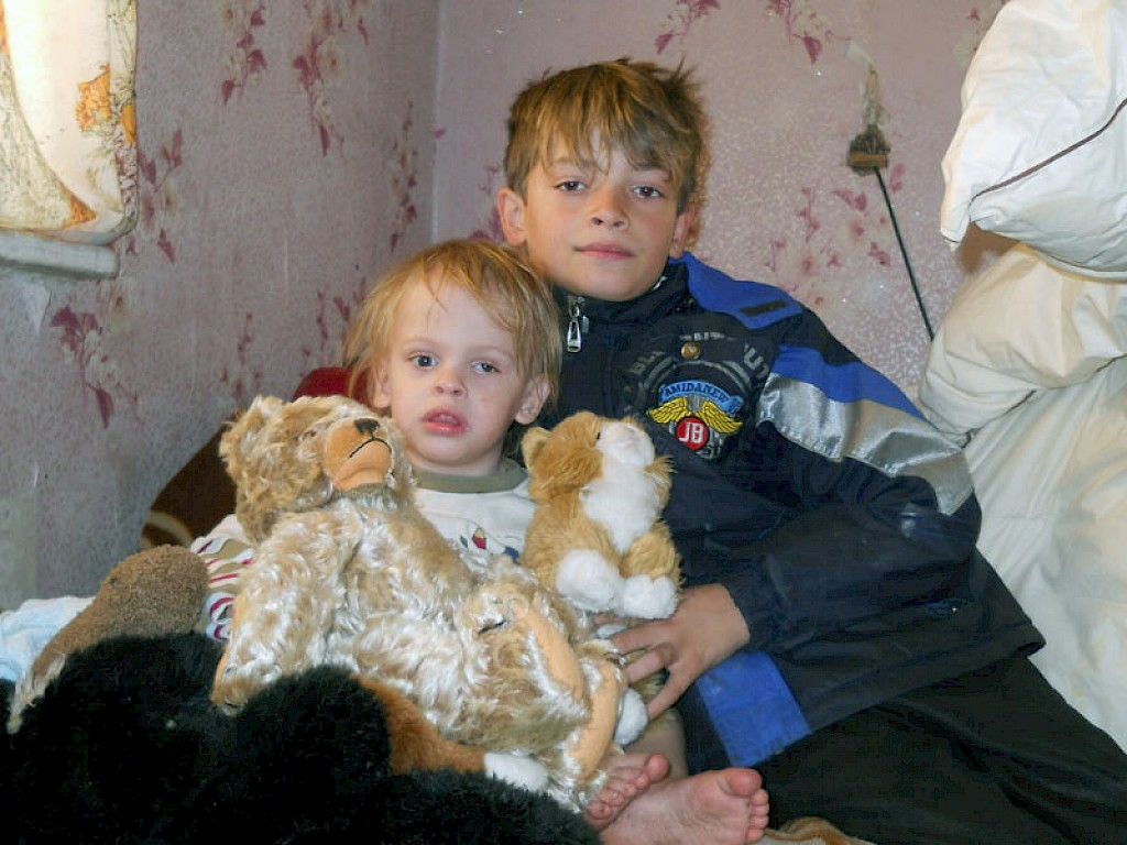 Gestern besuchten wir eine arme Familie in Alexeewka, die fast ausschließlich von trockenem Brot und Kartoffeln lebt. Ihre fünf Kinder haben keine Spielsachen. Sie haben sich aus einem alten Karton Puppen ausgeschnitten. Sie haben nicht einmal Buntstifte, um diese Puppen anzumalen.