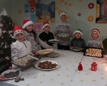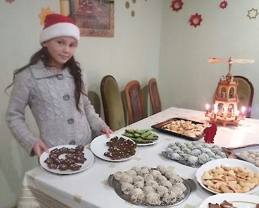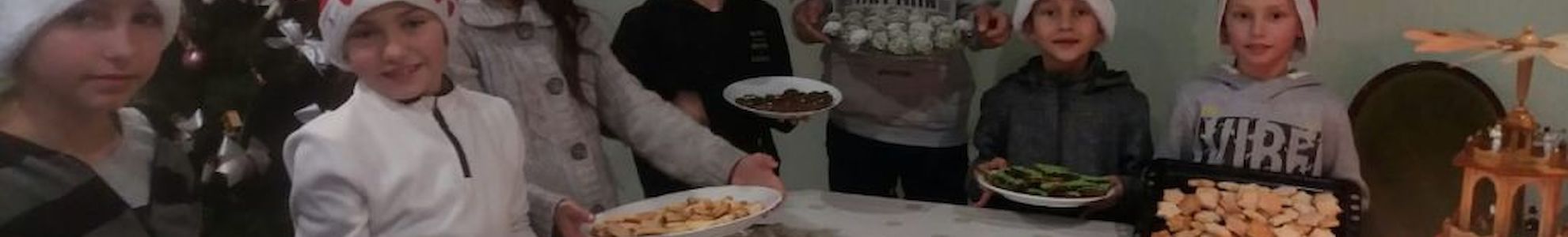 Und wir backen aber auch Weihnachtskekse. Wir nehmen sie bei unseren Besuchen bei alten Menschen und Kranken mit, um sie damit zu beschenken.