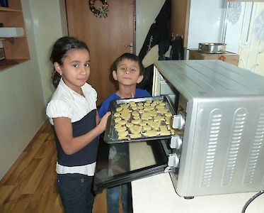Natürlich wollen alle Mädchen und Jungen lernen Kekse zu backen. Unsere Hausmütter bringen jeden Tag neue Rezepte und neue Zutaten mit. Wenn der Nachmittag dann langsam zu Ende geht, sitzen wir gemütlich in unseren Wohnzimmern. Dann sagen unsere Bäcker: „Probiert mal unsere Kekse. Danach müsst ihr raten, wie sie heißen und welche Zutaten wir verwendet haben.“